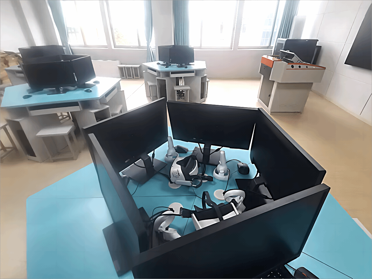 (8)511心理学虚拟仿真实训室,建筑使用面积约为80㎡,配有25套学生机、25套VR一体机、1套教师机、1套智慧黑板等设施,既能作为心理学专业的智慧教室,也能作为心理学专业的学生虚拟学习和实践心理学咨询相关技能、沙盘技能、虚拟体验高空恐惧等脱敏疗法的场所。