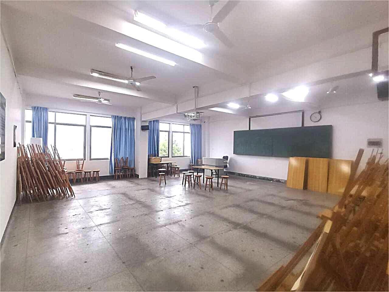 (7)612美术绘画实训室,位于西校区行知楼六楼,建筑使用面积为80m2。本实训室为学前教育专业学生美术绘画专用实训室,也是全校师生开展第二课堂《绘画心理分析》的场所。学生在画室可进行素描、水粉画、国画、儿童画、速写、艺术创作等多种类型的美术活动及绘画心理分析等活动,提升学生的绘画技能,培养学生的观察力、想象力、创造力,并提升师生以画纾心、以画观心、以画识人的心理健康意识。