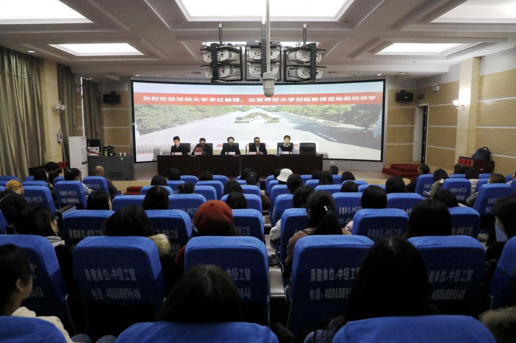 11月18日上午,教育部长江学者特聘教授、中国心理学候任理事长、国务院学科评议组成员、深圳大学博士生导师李红教授,北京师范大学国家重点实验室博士生导师刘超教授应邀来到学校,在理科楼三号楼中108室为师生代表作学术报告,解密情绪与道德认知。校长皮修平出席学术报告会并致欢迎词。副校长陈敏主持会议。