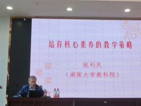 第二阶段,姚教授作《基于新课程标准的有效教学》的报告。他首先谈到新课标核心素养的培养目标在于使学生成为有理想、有本领、有担当的时代新人。他认为核心素养导向教学从知识入手,不以知识为终点,逐渐从知识本位教学转向核心素养导向教学。核心素养是教学的出发点、落脚点以及着力点。他还指出,学习中心课堂建立的过程是教转化为学的过程。教学过程是学生的学习过程,没有学,教的价值将荡然无存。他还强调,要把课堂还给学生,让学生真正成为课堂学习的主人,要相信和利用学生的学习能力,确保学生进入学习状态,让学生学习在课堂真实发生。