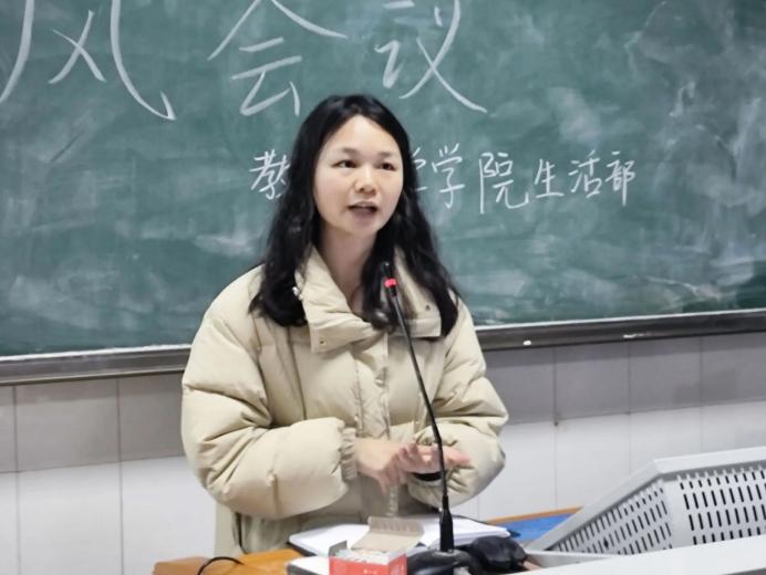 为提高学生们的自我安全意识,培养良好的卫生习惯,推动我院寝风建设良性发展,创设美好和谐的宿舍环境,近日,我院于行知楼302召开2024年上学期第一次寝风会议,此次会议由生活部部长项冰蕊主持,辅导员申鑫玉老师主讲,2021-2023级生活委员、寝室长、寝风督察员参加。