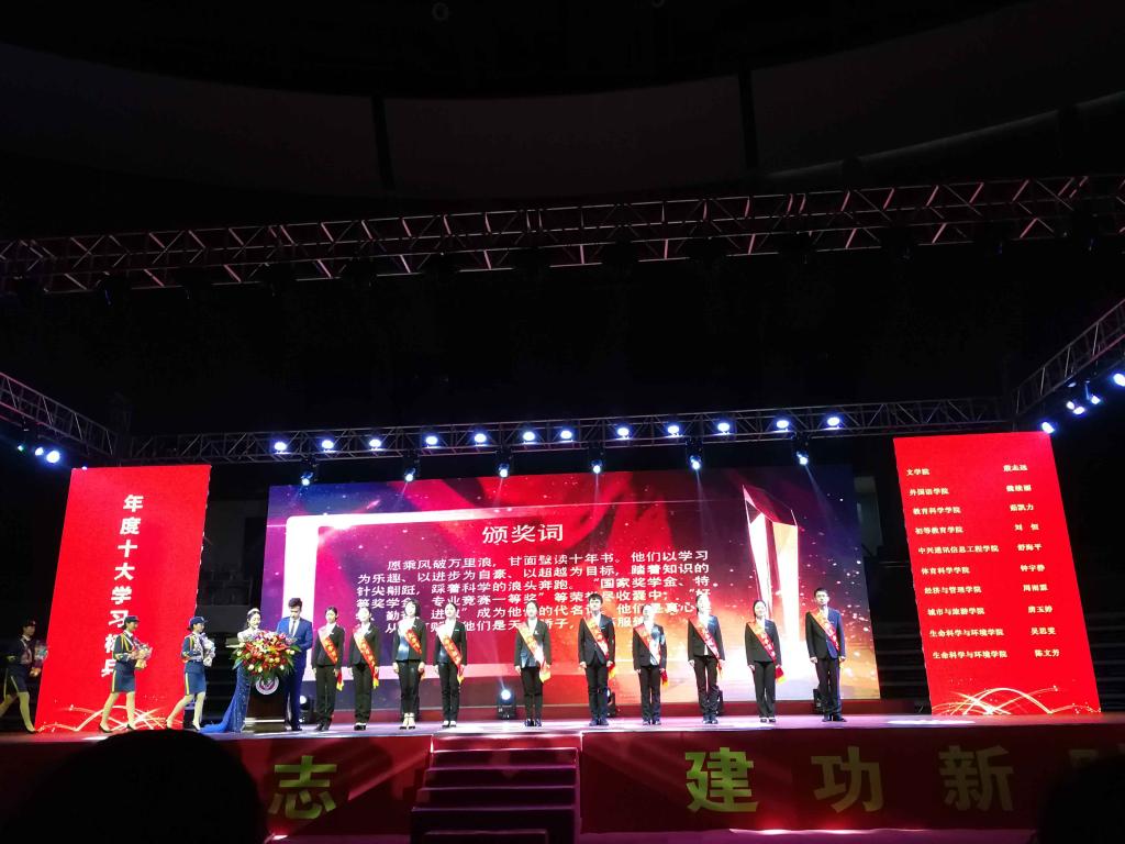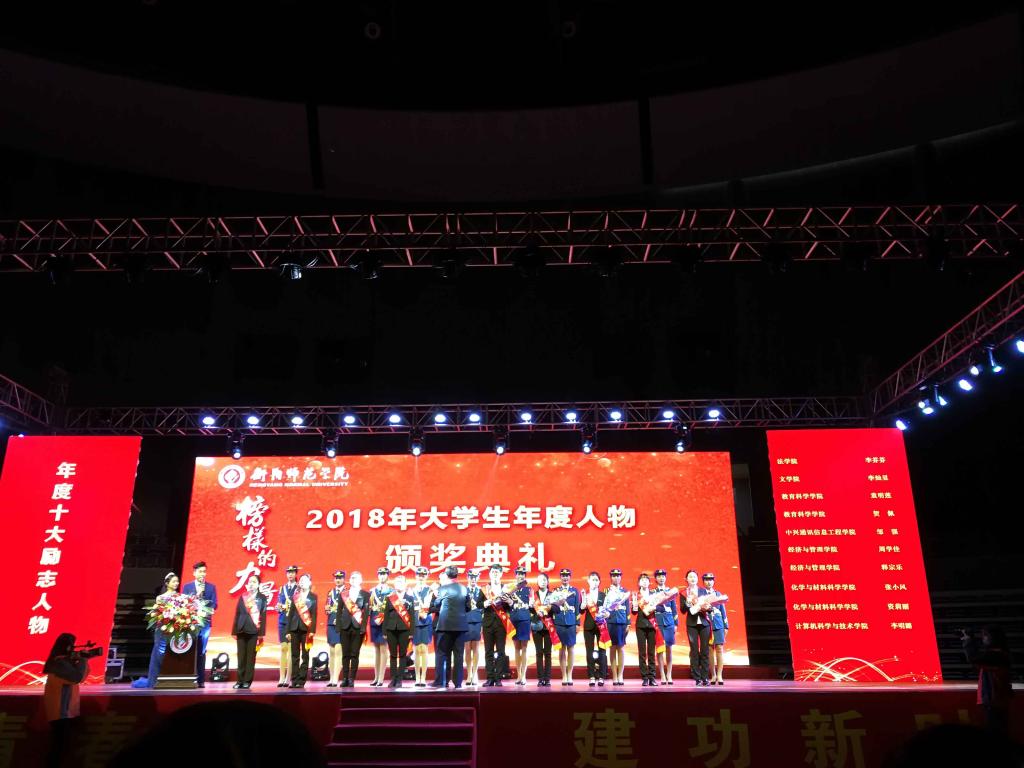 12月10日晚,我校“榜样的力量”2018年大学生年度人物颁奖典礼在体育中心篮球馆隆重举行,教育部教学工作审核评估专家、学校领导、学院领导及师生代表4000多人参加典礼,我院茹凯力同学获得十大学习标兵,童明莲、贺佩同学获得十大励志人物。