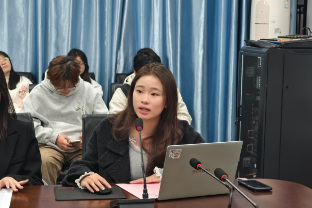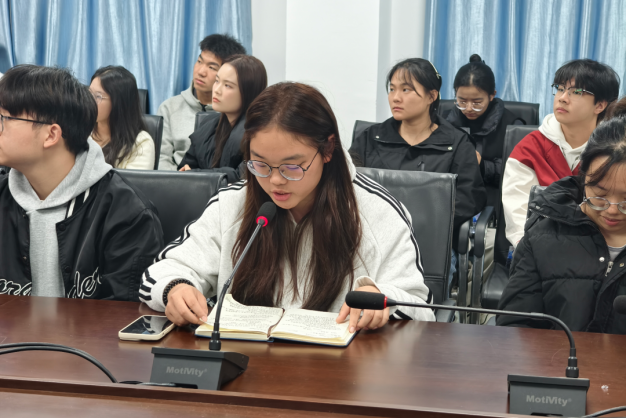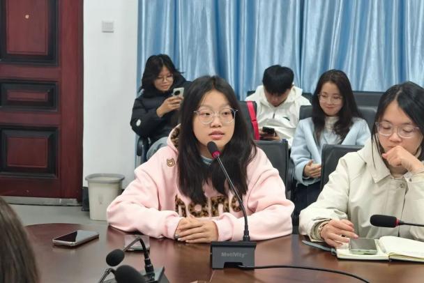 学生社团管理部主席团成员化依婷进行工作说明,她提出各位团学干部应按要求提交各学院节目推荐材料,积极筹备元旦游园会集市部署活动,并按要求展示劳动教育实践活动成果。
