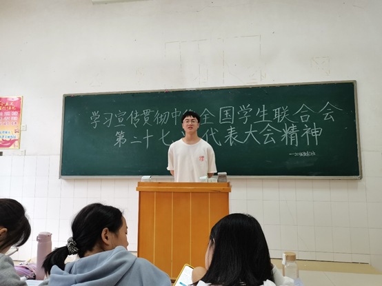 为学习贯彻中华全国学生联合会第二十七次代表大会精神特别是主席贺信和党中央致词精神,扎实推进学生会组织改革,全面加强对学生会工作人员的管理,根据湖南省学生联合会关于下发《湖南青年学习宣传贯彻中华全国学生联合会第二十七次代表大会精神工作方案》的通知要求我院开展了专题培训、主题团日活动、精神宣讲等活动。