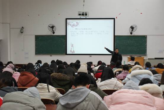 为弘扬中国优秀传统文化,践行社会主义核心价值观,12月14日上午10点30分,我院于外语楼301教室举办了行知书院大讲堂。此次讲堂由吴云鹏老师主讲,全体16级学生参加,主题为传统文化之“百善孝为先”。