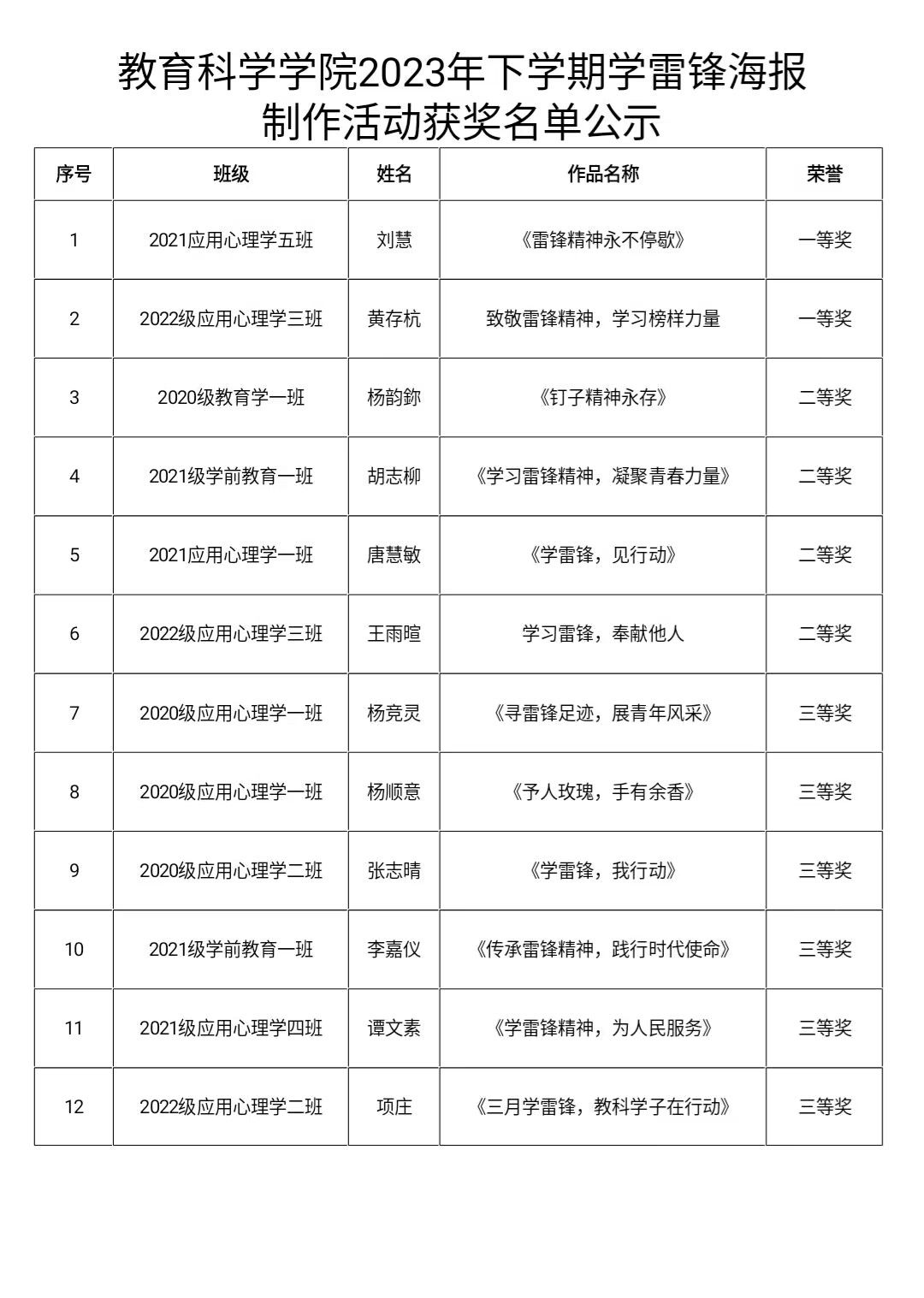 附件:365英国上市集团2023年下学期学雷锋海报制作活动获奖作品名单表
