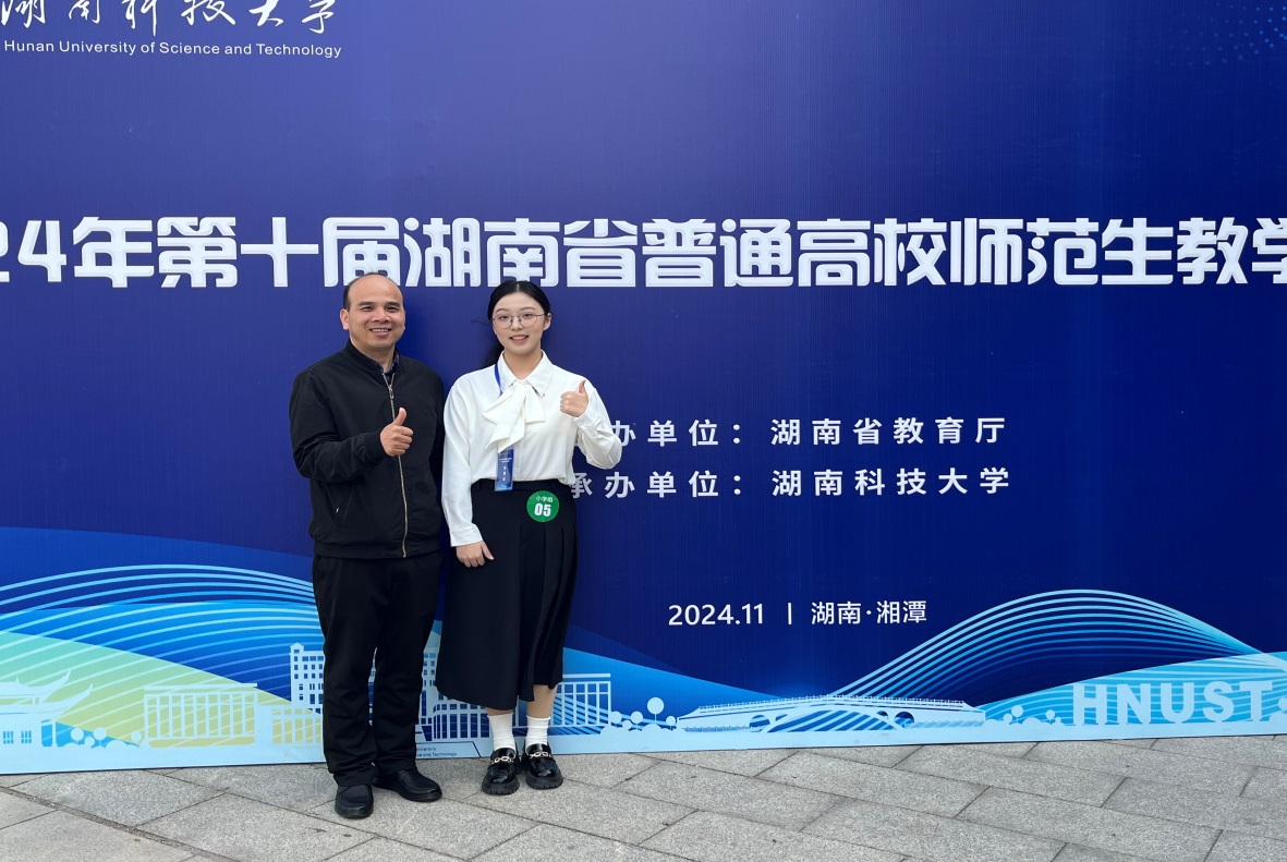 11月19日,湖南省教育厅公示了第十届湖南省普通高校师范生教学技能竞赛获奖名单,我院教育学专业2022级学生江之源荣获小学教育组三等奖,开创了我院和我校学子在该赛事小学教育组获奖的历史记录。