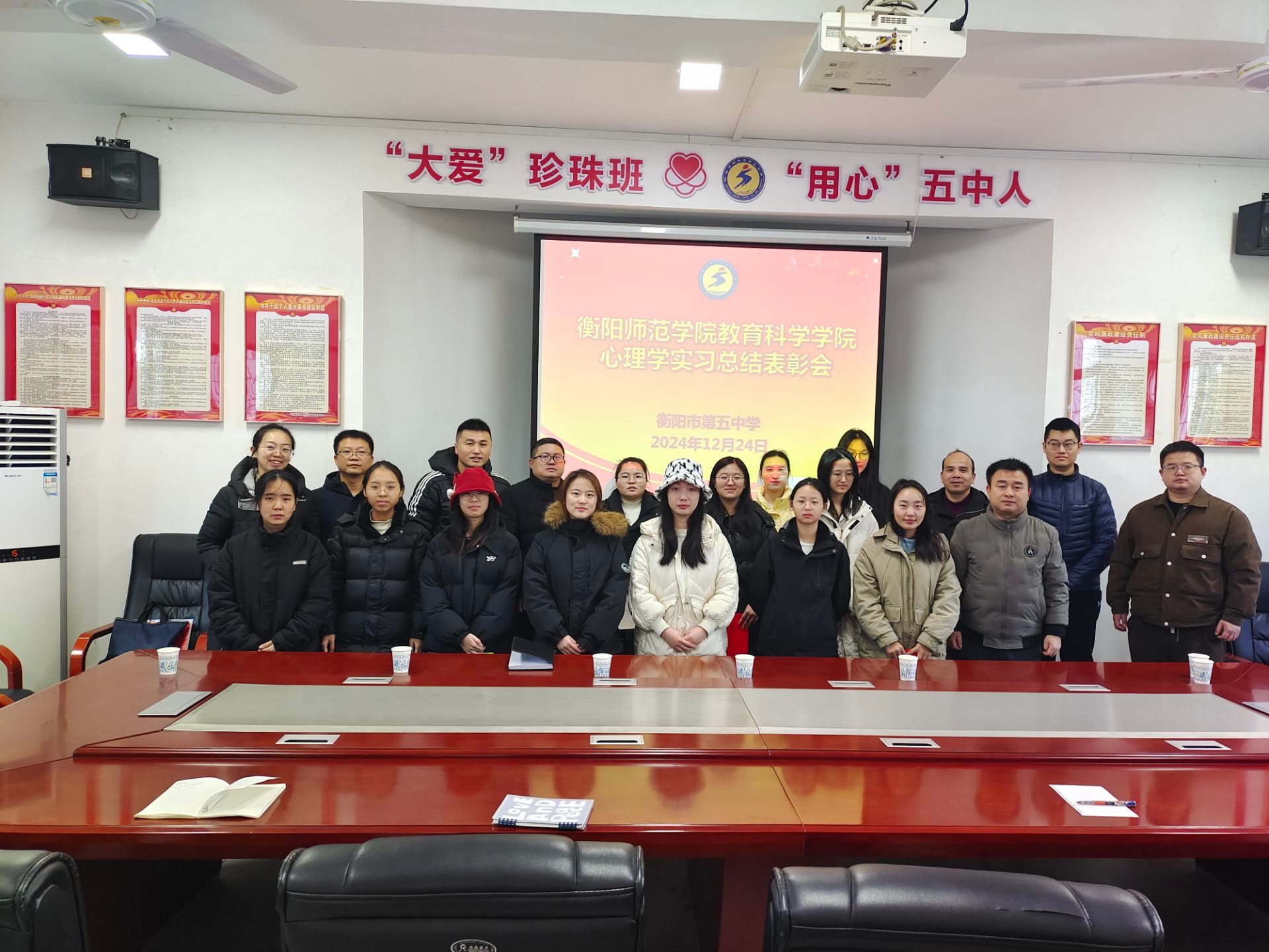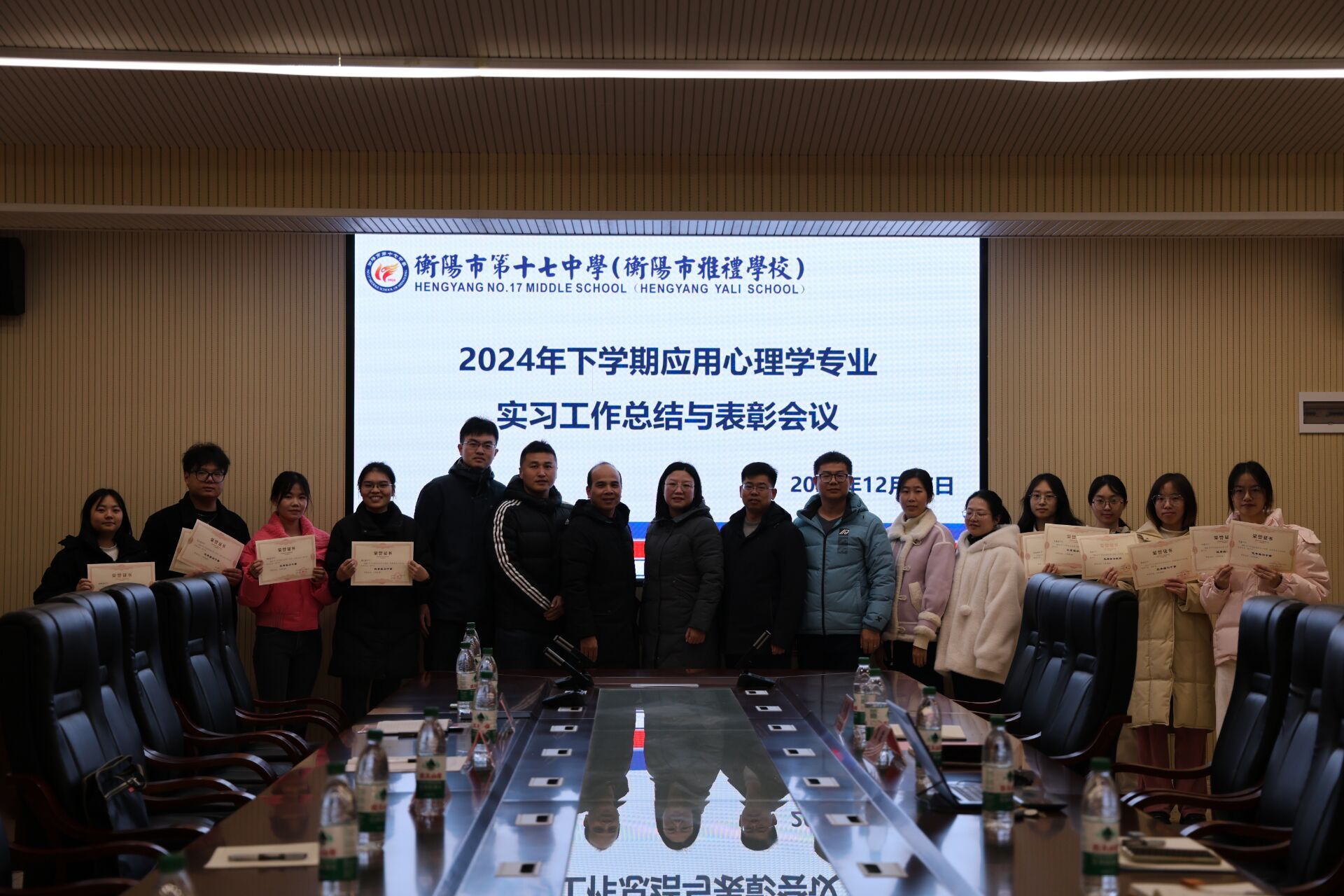 12月24日至27日,我院教学副院长梁文明、心理学系主任刘罗、应用心理学专业2025届实习指导教师周丽华、陈贵、罗军、卢鑫、夏骁凯等一行,赴衡阳市第五中学、衡阳市成章实验中学、衡阳市博雅学校、衡阳市第十五中学、衡阳市第十七中学等五个实践教学基地开展应用心理学专业2025届实习工作总结暨表彰大会。