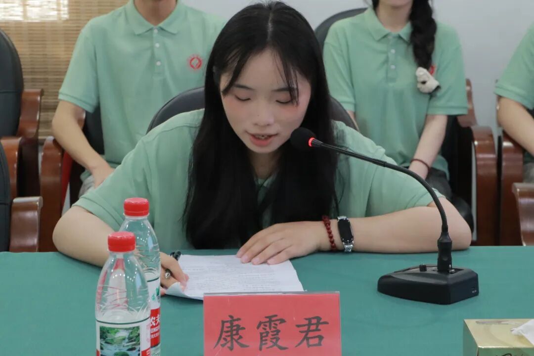 “衡梦启行·稚翼启明”实践团负责人康霞君作为志愿者代表进行发言:“感谢学院的悉心指导,感谢前进村村委会的信任与支持”。康霞君从“我们为何而来”“我们如何行动”两个方面回应留守儿童的心理关怀等乡村真实需求,表达了青年脚步与乡村脉搏同频共振的坚定决心。