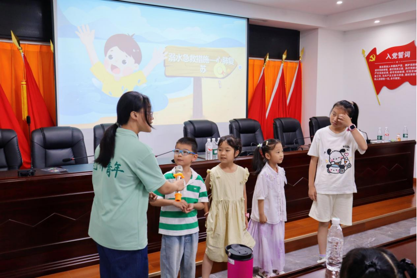 讲座中,志愿者以一组触目惊心的数据敲响警钟:全国每年约5.7万人溺亡,其中60%为0-14岁儿童。活动重点破除“会游泳≠不会溺水”、“水性好≠不会溺水”的认知误区,强调放下侥幸、时刻警惕是预防关键。通过讲解“干性溺水”与“湿性溺水”的概念及溺水的三种致死机制,帮助孩子们科学认识溺水危害。