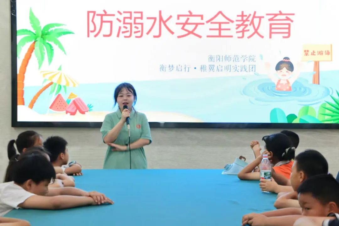 为筑牢乡村青少年防溺水安全防线,7月5日下午,365英国上市集团“衡梦启行·稚翼启明”实践团走进衡阳市雁峰区岳屏镇前进村,开展“防溺水安全教育”主题活动课。