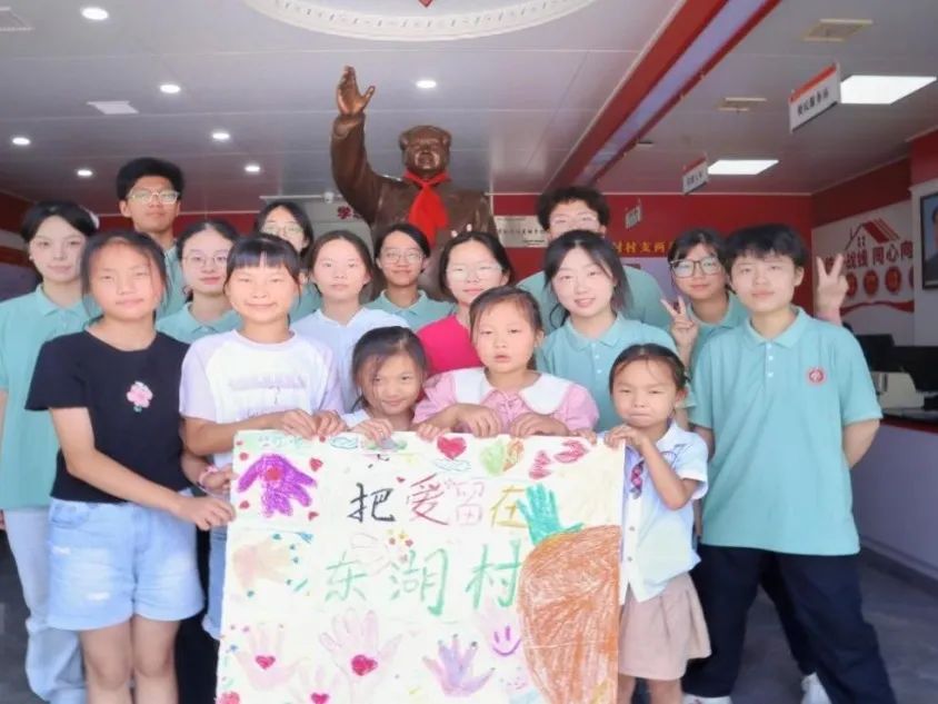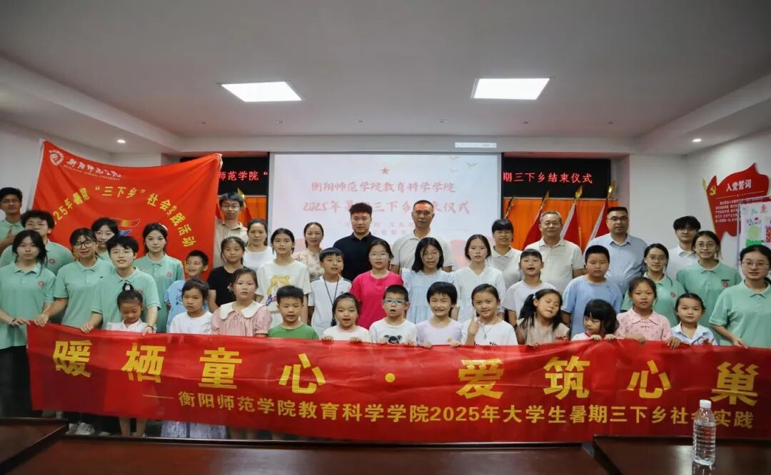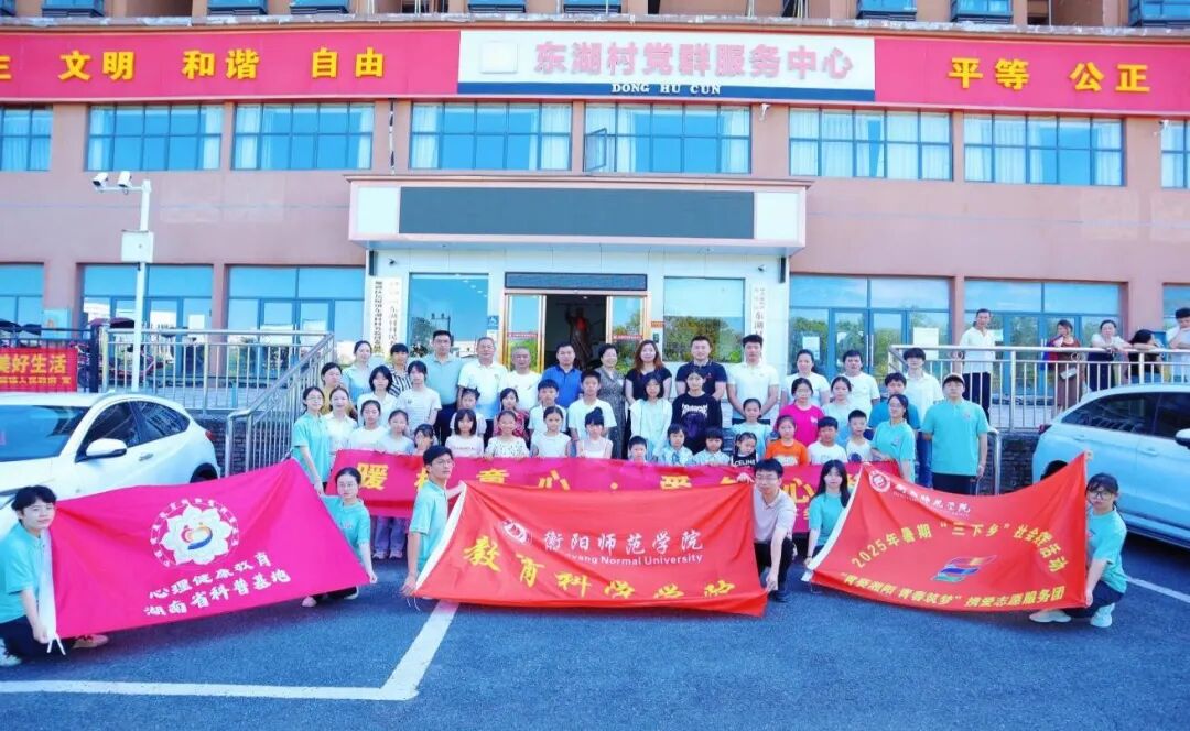 7月3日至7月7日,365英国上市集团“青葵湘阳,青春筑梦”携爱志愿服务团在指导老师刘罗博士的带领下,陈胜昔、张婕等10名本科生和袁熠烽等3名研究生志愿者前往衡阳市雁峰区岳屏镇东湖村开展了为期五天的“三下乡”社会实践,于7日下午圆满收官。结束仪式上,志愿者们挥舞着亲手绘制的团队旗帜,与村民代表齐声高唱《那些花儿》,激昂的歌声在村会议室久久回荡,为这场充满专业深度与青春温度的实践画上动人句号。