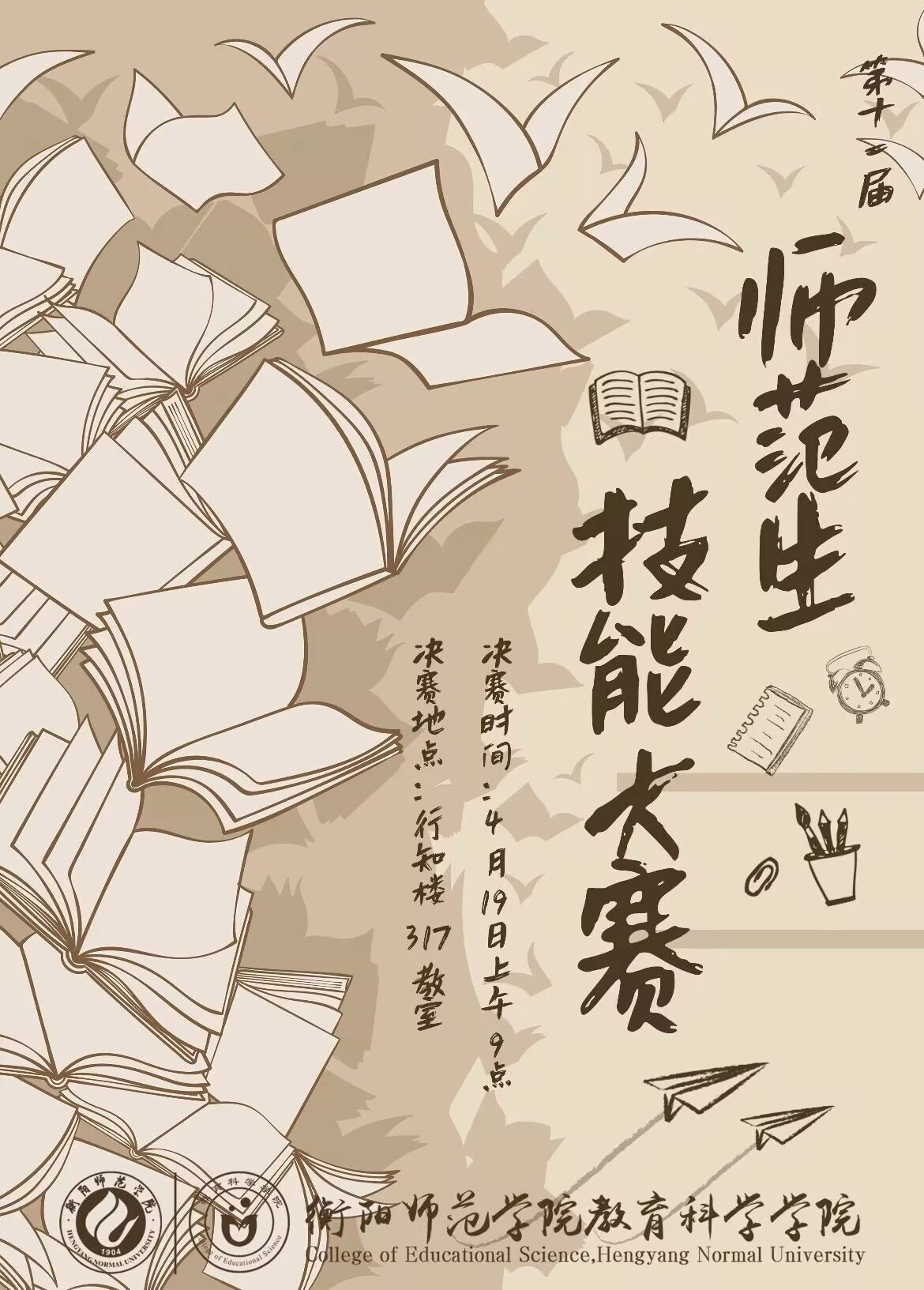 以身立教,为人师表。为了进一步提高学生的教学技能,激励学生追求卓越,提高师范生的教学质量,加强师生之间交流,促进师范生教育教学能力与综合素质提升,我院特于4月19号在西行知楼317,319举行第十一届师范生技能大赛。