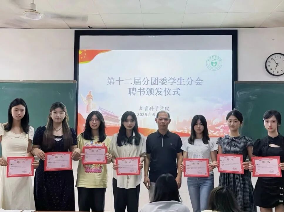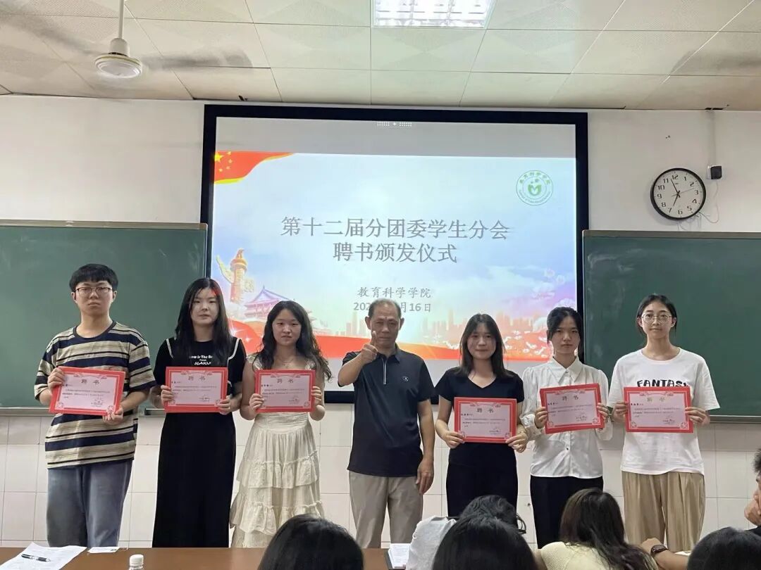 会议伊始,陈书记为第十二届分团委学生分会成员颁发聘书,并对各部门的工作给予肯定,鼓励团学会干部继续发挥好老师与学生之间的桥梁作用。