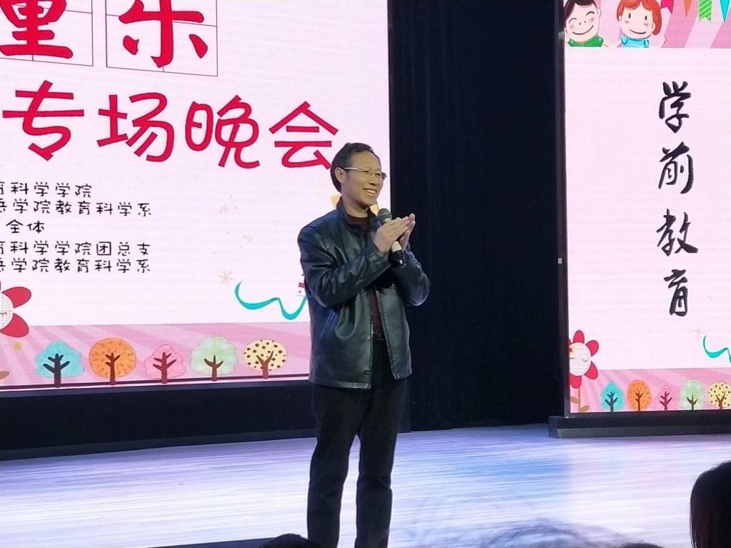 在播放晚会宣传片之后,陈书记上台致辞,为本场晚会拉开了序幕,充分表达了对本场晚会的美好祝愿。开场舞《小懒猪,起床啦!》就营造了生动活泼的童趣氛围,打下了开门红。本场晚会精彩纷呈,内容丰富,形式多样。涵盖了音乐游戏、现代舞、古典舞、科学活动、T台秀等多种艺术形式,节目风格迥异,有时尚流行与古典风雅的碰撞,也有当今时代最热门的话题,以及教人育人与个性飞扬的融合。其中,音乐游戏《听见稻香》展示了学前女孩们飞扬的青春风采;午休《好宝宝爱刷牙》体现了教育孩子从小养成良好习惯的寓意;早操《我爱幼儿园》让观众感受到了童真乐趣;艺术欣赏《书简舞与现代舞》呈现出不同的舞蹈风格及表现形式;科学活动《遇见光与影》让大家感受到了光与影别样的艺术魅力;古典舞《沂蒙颂》给大家带来了不一样的视觉盛宴;最后的T台秀《胖子跨越次元壁》更是将整场晚会的气氛推向了高潮,让我们重温了儿时的美好记忆,现场掌声欢呼声不断。在表演中还穿插了游戏环节,同学们踊跃竞争,趣味十足。