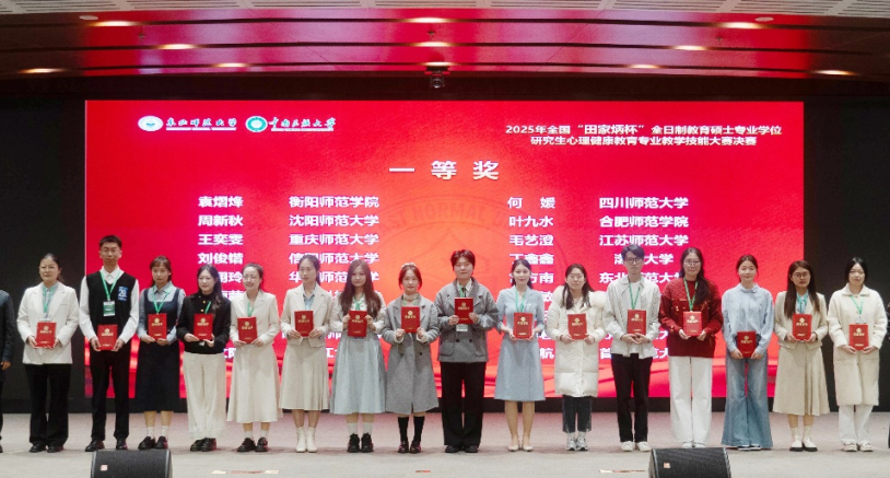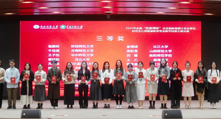 2025年全国“田家炳杯”全日制教育硕士专业学位研究生心理健康教育专业教学技能大赛于10月19日圆满落下帷幕。其中,由唐芳贵副校长、尹洁教授指导的3位参赛研究生均获佳绩:袁熠烽同学获得全国一等奖,田熠同学获得全国三等奖,张文涵同学获得全国优秀教学设计奖,实现了该竞赛一等奖的突破。