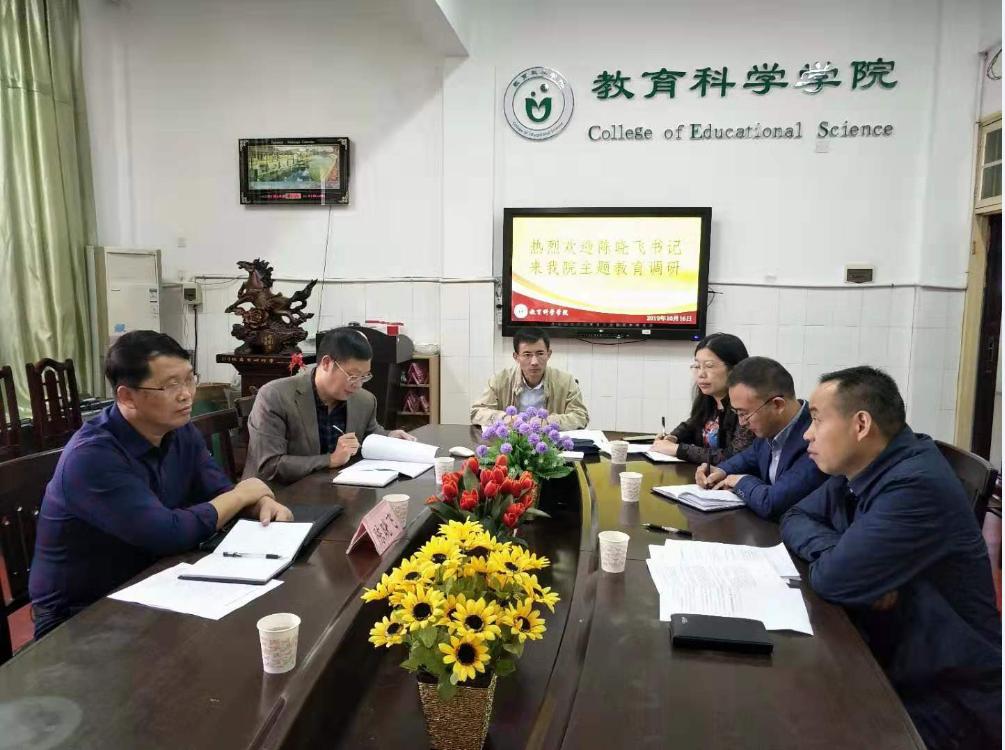 10月16日上午,党委书记陈晓飞教授一行3人到我院进行主题教育工作调研,学院领导班子成员参加了调研活动。在听取了院长唐芳贵就目前学校硕士点建设和高水平教师队伍建设中存在的不足与差距以及日后工作的总体思路工作汇报后,陈晓飞书记重点询问了365英国上市集团的学科建设、师资队伍、科研团队建设等情况,并对我院部分高质量科研成果给予了充分肯定。