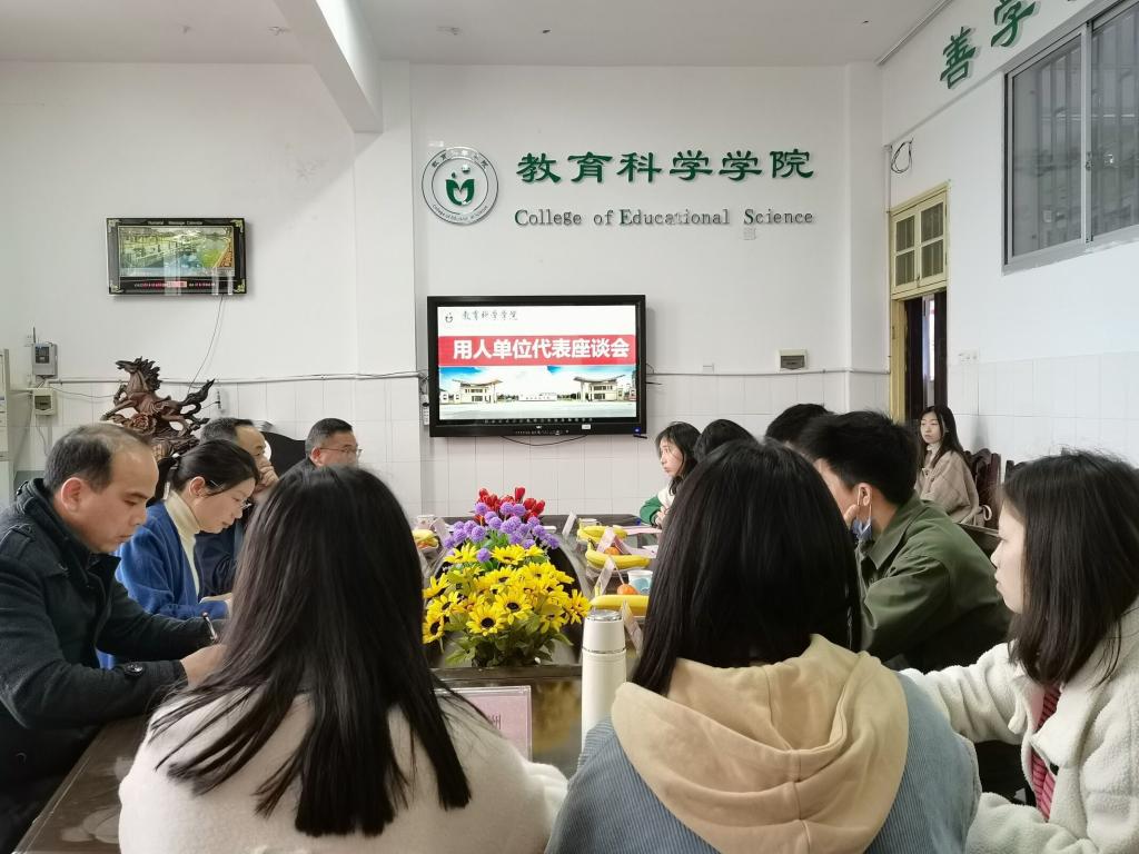 唐院长强调就业、素质培养是我院近几年高等师范教育素质改革的重要方向并表示我院通过校企合作等形式一直致力于此。鉴于今年下学期我院有学前教育学生参与国家二级师范专业证的评定,唐院长也希望通过与各用人单位代表交谈的方式对人才培养质量和需求进行初步调研,从而为更深层次的合作创造条件。