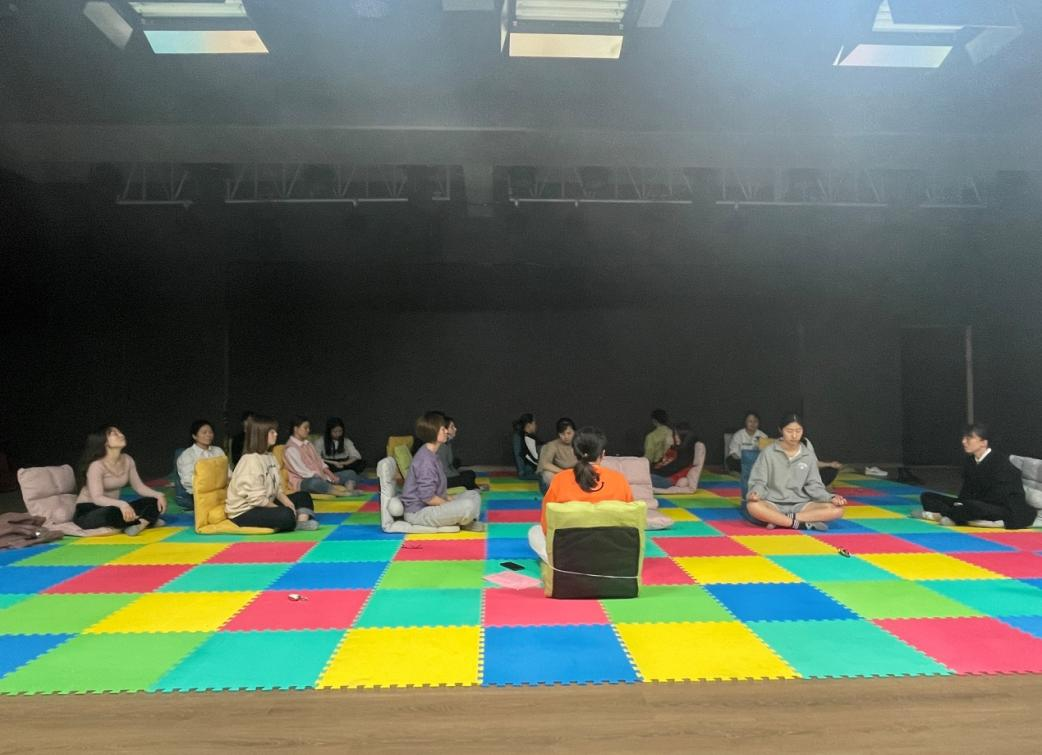 活动开始,尹洁副教授带领大家进行十五分钟的静观训练,引导大家专注当下,觉察、接纳当下,不评判,不拒绝,逐步体验放松的感觉。