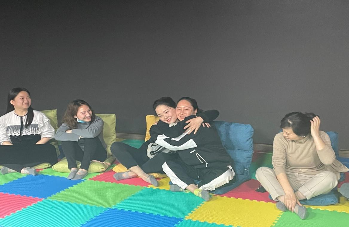 在轻松愉悦的氛围中,尹洁副教授引导大家进入到“微笑握手”活动环节,通过活动,让老师们发现并欣赏自己以及他人的闪光点,给予对方拥抱肯定,使成员更加全面的认识自己与同事,并初步感受团体心理成长的特殊氛围。