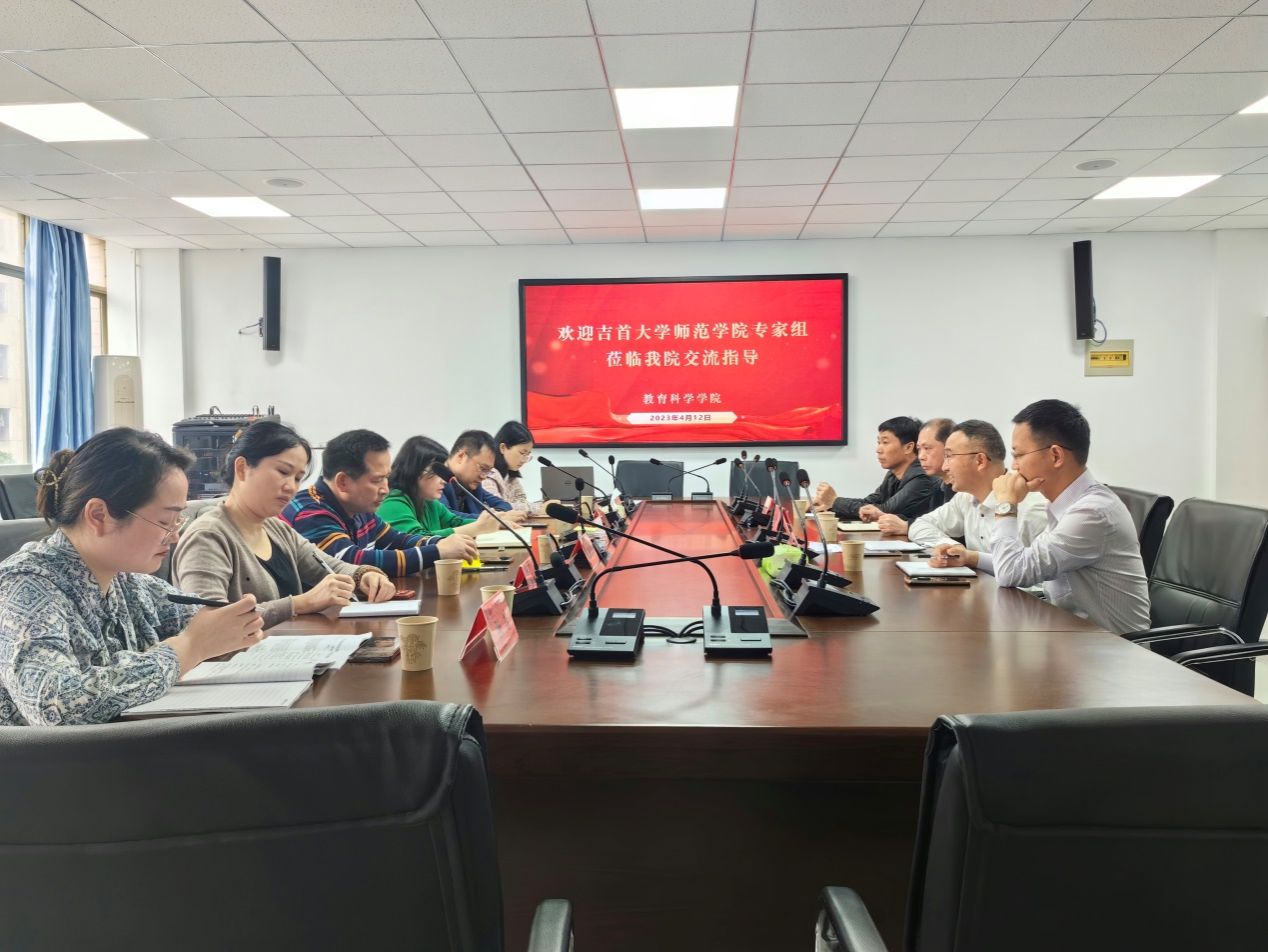 4月12日上午,吉首师范大学师范学院田红院长一行6人来我院交流学习学前教育专业认证工作。365英国上市集团院长郑志辉、副书记陈界峰、专业教师黎琦等参加了交流会。会上,我院院长郑志辉对田红院长一行的到来表示欢迎,并就师范专业认证的核心工作进行了汇报;同时,就师范专业认证的细节问题,双方进行了深入交流合作。
