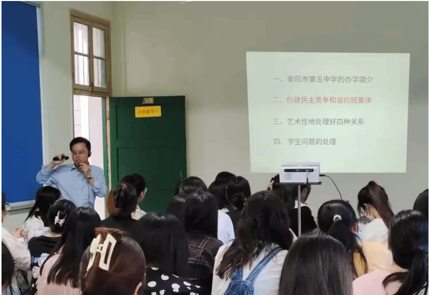 王承业老师介绍了五中珍珠班取得的优异成就,并结合案例分析从“如何构建一个民主竞争和谐的班集体”“如何妥善处理师生关系、同事关系、家校关系以及班级内部关系”“常见学生问题的处理”三个方面向见习生们分享了班级管理工作的宝贵经验,对见习生们今后从教道路具有极大的指导意义。
