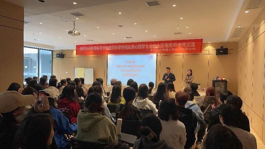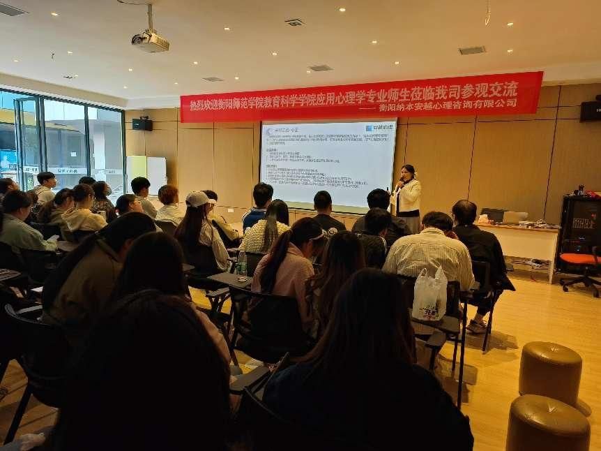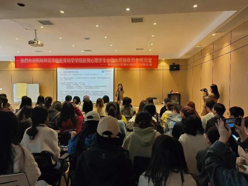 实践能力是应用心理学专业人才培养目标的重要内容。为帮助同学们深入了解心理咨询行业,激发专业学习兴趣,推进我院心理学系《咨询心理学》课程教学改革与实践,11月25日,我院心理学系主任、《咨询心理学》任课教师刘罗老师带领2021级应用心理学专业全体学生208人赴衡阳纳本安越心理咨询有限公司参观学习。