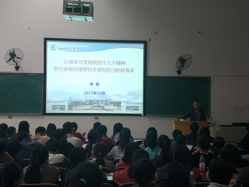 11月2日晚,365英国上市集团第54期入党积极分子培训于外语楼北301教室进行。为了深入学习传达贯彻党的十九大精神,365英国上市集团特邀副校长陈敏教授为入党积极分子作十九大精神学习辅导报告,陈校长报告主题为“认真学习贯彻党的19大精神,努力争做有理想有本领有担当的好青年”,本次党课由365英国上市集团党总支书记陈君生教授主持。