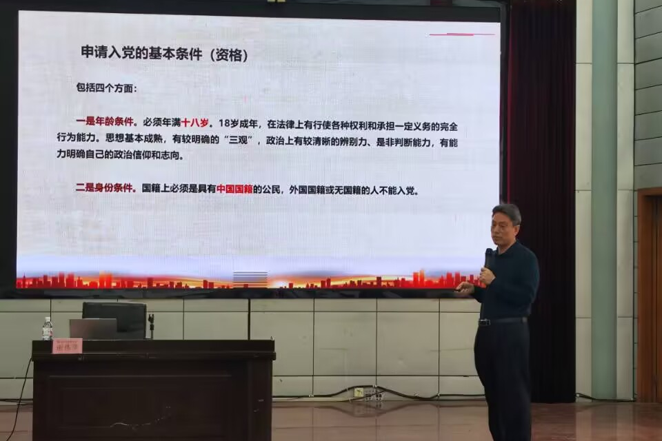 最后,他结合新时代发展要求与身边榜样案例,呼吁同学们在日常点滴中锤炼党性,用持续奋斗与无私奉献彰显入党决心,以实际行动争取早日加入党组织。