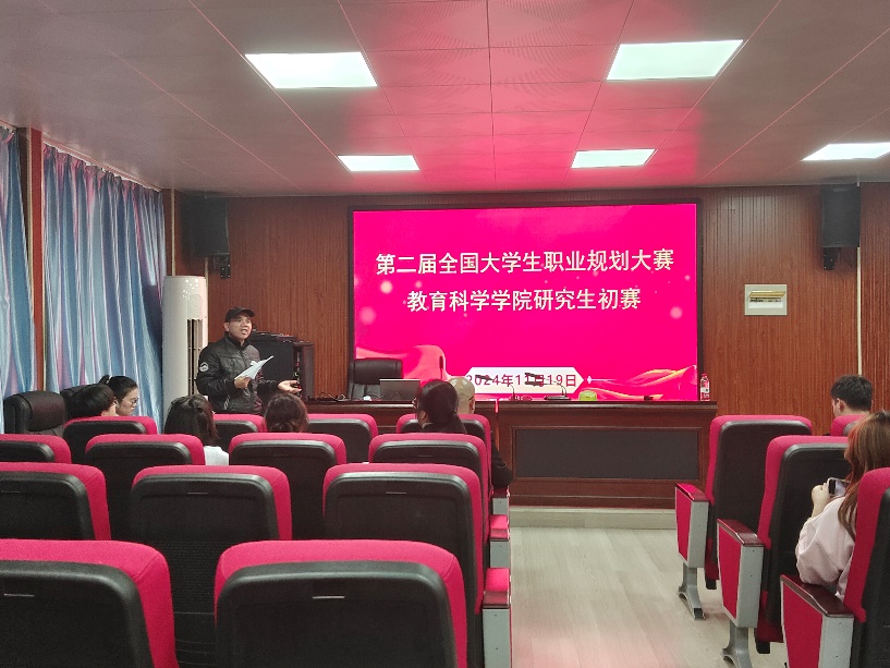 2024年11月19日下午,我院在行知楼412教室举办题为“筑梦青春志在四方,规划启航职引未来”的第二届全国大学生职业规划大赛初赛,并诚邀谢伟华书记、左崇良副院长、梁文明副院长以及辅导员吴金煌老师作为本次初赛评委,我院研学会学术部部长谢美玲负责主持本次活动。
