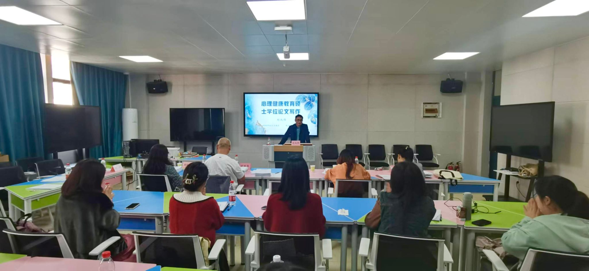 刘成伟教授以其丰富的学术经验和深厚的专业知识,深入浅出地讲解了论文选题、文献综述、研究方法、数据分析以及论文撰写等各个环节的要点和注意事项。此外,还特别强调了选题的重要性。指出一个优秀的论文选题应该既具有学术价值,又能够解决实际问题。同时,他还分享了自己在选题过程中的一些经验和技巧,鼓励学生结合当前社会热点和心理健康教育领域的实际需求进行选题。