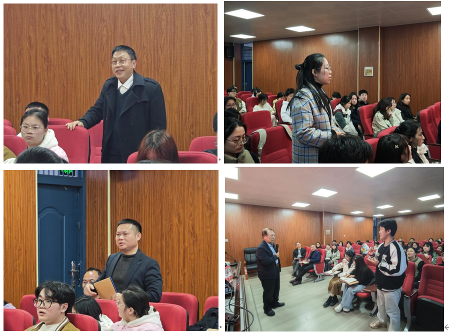 在互动环节,老师及同学们纷纷踊跃提问,就自己在学习和研究中遇到的困惑向邬教授请教。邬教授耐心细致地解答了每一个问题,并鼓励同学们要保持对知识的渴望及对学术的敬畏之心。