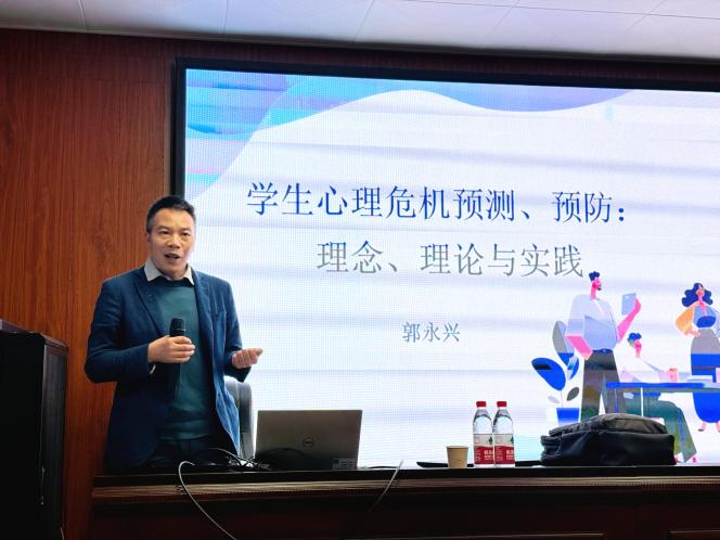 讲座聚焦“青少年心理危机预测:突变理论的视角”。郭永兴博士以其心理学博士及广东省心理学会社会心理服务分会副主任的专业背景,深入浅出地介绍了突变理论在心理危机预警中的应用。他强调,对青少年心理状态的动态监测与科学干预具有重要意义,并为在场学生提供了理论与实践相结合的研究视角。