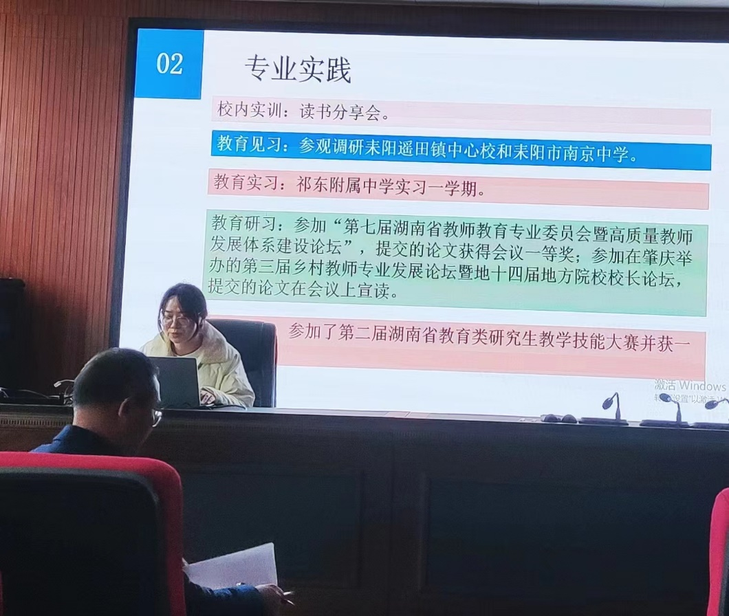 2022级教育管理专业10位硕士研究生分别进行了详细的中期汇报。同学们展示了学业上取得的成绩、精彩的实习生活和科研成果进展。汇报结束后,何敦培教授针对考核结果指出了同学们在今后的学习和工作中需要改进的地方。