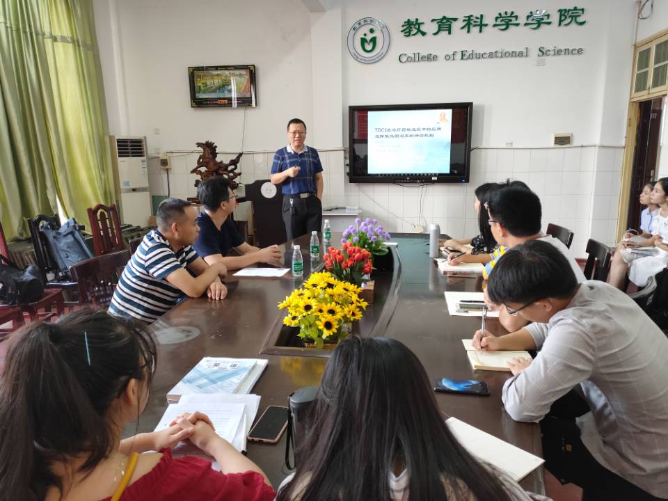9月20日上午,应我院邀请,中国科学技术大学张效初教授为我院师生、2019级教育硕士全体研究生作学术报告,主题是《TDCS在治疗药物成瘾中的应用及降低吸烟渴求的神经机制》。报告会在学院会议室举行,院长唐芳贵主持报告会。