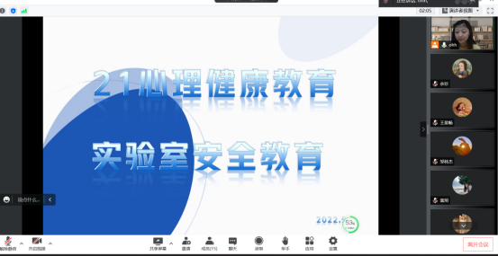 2021级、2022级教育管理专业和心理健康教育专业研究生通过腾讯会议观看了高校实验室安全培训有关视频,并发表了个人的观后感,从思想上认识到了安全实验的重要性。