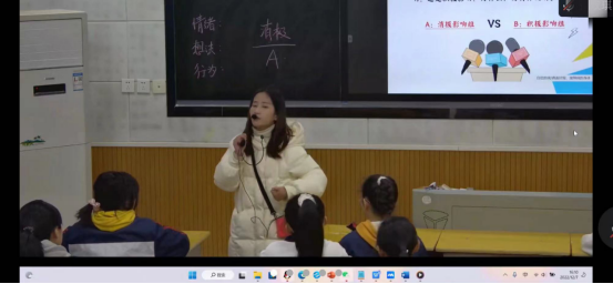 首先,尹洁老师组织学生在线观看了衡师祁东附中老师的以“直面比较,接纳自我外型”为主题的心理健康教育课。观看结束后,她要求学生讲出对本节心育课的整体感受。在这个过程中,同学们畅所欲言地发表了对本节课的真实感受,大家都关注了本节心育课堂的辩论赛。随后,她将学生们分成两个小组,针对如何优化教学设计,改进教学方式,调节课堂氛围进行了激烈的谈论。讨论结束后,三位老师就同学们提出的建议,引导我们对课堂进行系统的优化。