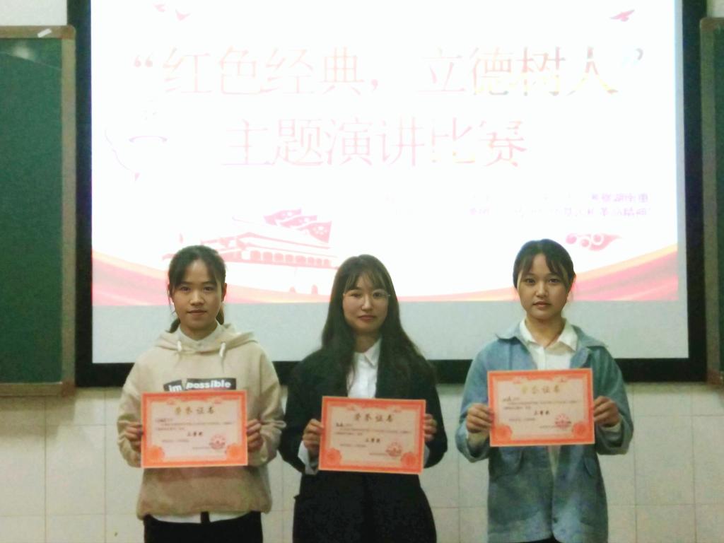 为响应总书记考察湖南讲话号召,有效提高大学生思想品质和道德情操,在新一代中传承红色精神,培养合格的共产主义接班人。10月22日晚19:00,我院“红色经典,立德树人”主题演讲比赛在文A311举行。
