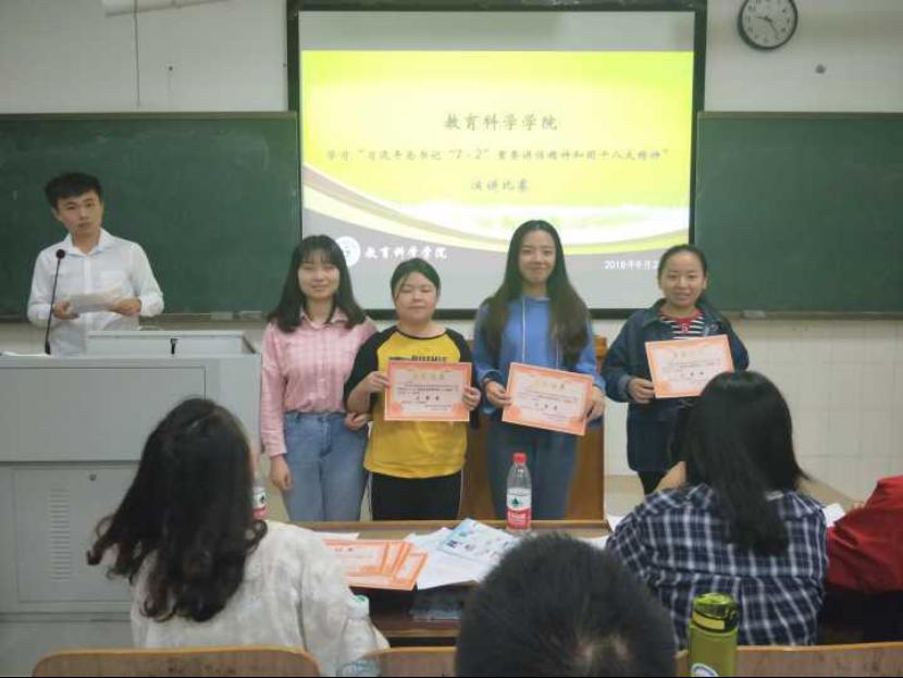 为了深入学习贯彻了习近平总书记系列重要讲话精神,我院于2018年9月28日晚文综楼A307教室开展了以“习近平总书记‘7·2’重要讲话精神和团十八大精神”为主题的演讲比赛。